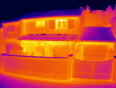 Appliquées aux bâtiments, cette technique permet de mettre en évidence le comportement thermique d’un bâtiment. Lorsqu’elle est réalisée par temps froid, l’image thermique révèle les sources de déperdition de chaleur.